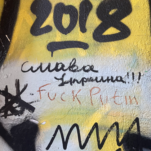 #StandWithUkraine - the support for Ukraine wasn’t in your face obvious, but instead Greeks support Ukraine in more subtle ways. I saw a few posters and paintings in the city and even blue and yellow ribbon inside a car. During the last few days I also spotted a Ukrainian flag and F**k Putin messages written along city walls.